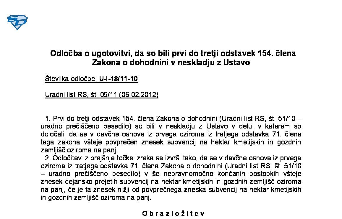 Odločba Ustavnega sodišča - tretji odstavek 90. člena, 9. točka 95. člena in šesti odstavek 98. člena ZDoh-2 (25.04.2014) 10.04.2014 29.04.2014