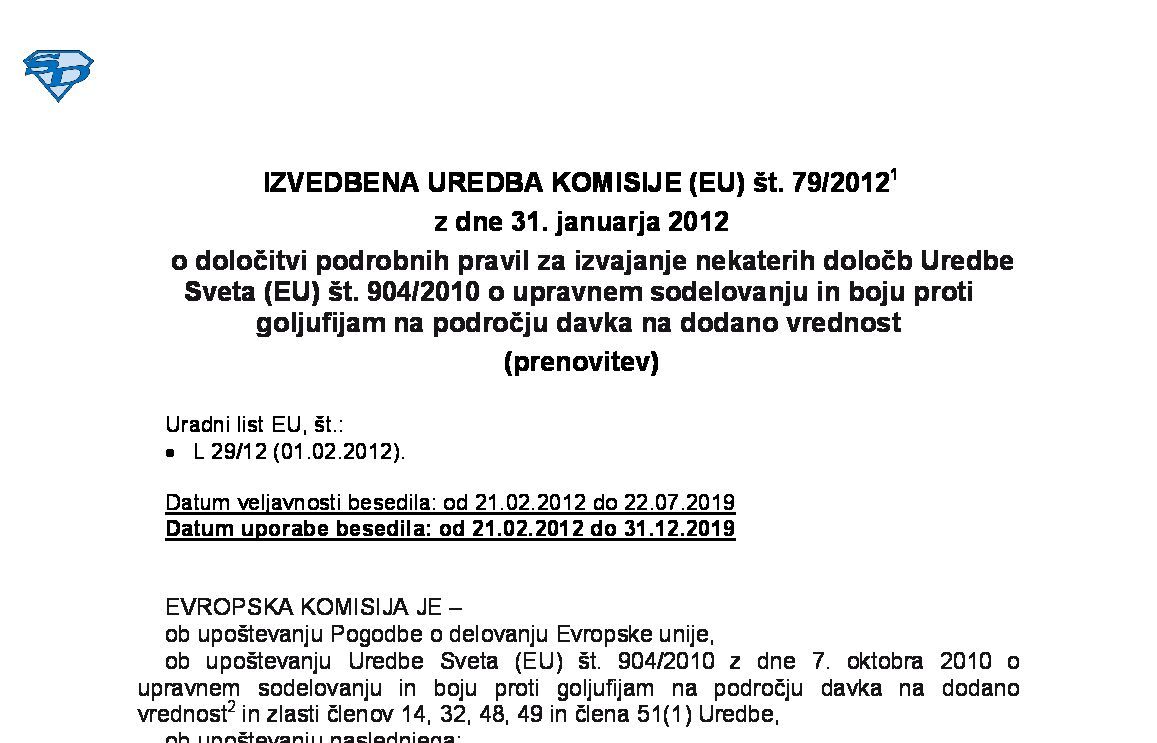 Članek nima posebnosti! Izvedbena uredba Komisije (EU) št. 79/2012 z dne 31. januarja 2012 .pdf