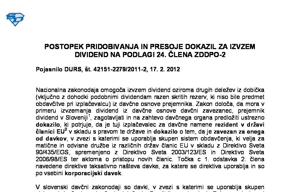 Članek nima posebnosti! 17.02.2012 - POSTOPEK PRIDOBIVANJA IN PRESOJE DOKAZIL ZA IZVZEM DIVIDEND NA PODLAGI 24. ČLENA ZDDPO-2 (ANG verzija).pdf