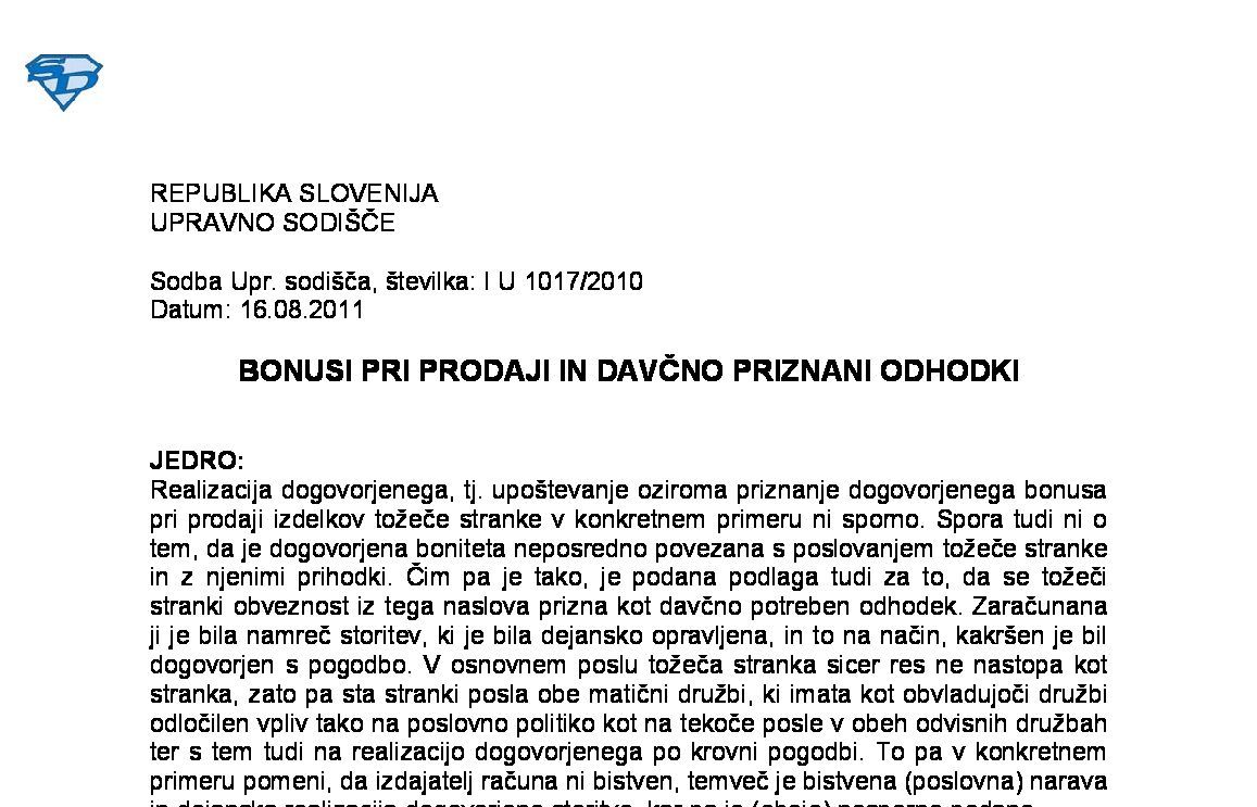 DDPO IN PREKLUZIJA DOKAZOV – Davčno priznan odhodek – Rezervacije – Prikrito izplačilo dobička (I U 652/2021-12) 15.07.2024 30.01.2025