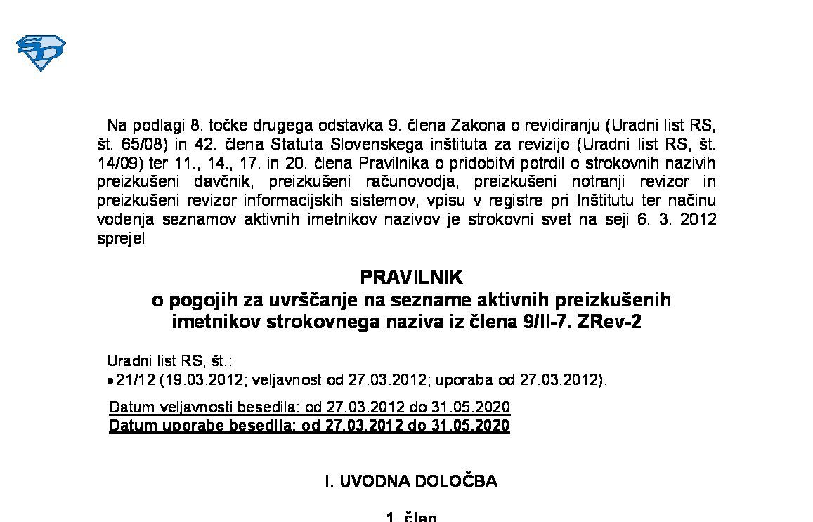 Pravilnik o pogojih za pridobitev potrdila o strokovnih znanjih za opravljanje nalog pooblaščenega revizorja, potrdila o strokovnih znanjih za opravljanje nalog dajanja zagotovil o trajnostnosti in obveznem praktičnem usposabljanju 22.02.2025 [!] 25.02.2025