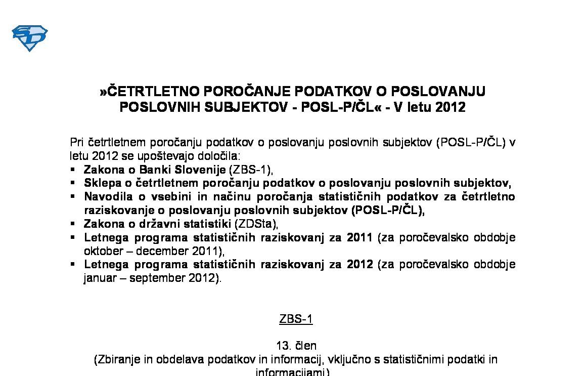 ČETRTLETNO POROČANJE PODATKOV O POSLOVANJU POSLOVNIH SUBJEKTOV - POSL-P/ČL - V letu 2025 10.01.2025