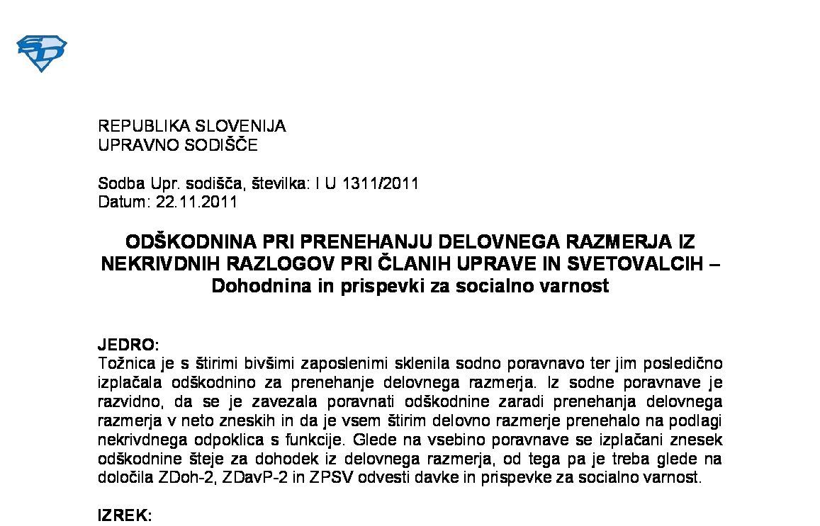 PREJEM POSLOVNEGA DELEŽA V DRUŽBI OB ANGAŽIRANJU PRI SANACIJI DRUŽBE – Darilo, ki se obdavčuje po ZDDD, ali dohodek obdavčen po ZDoh-2 (I U 1495/2022-13) 20.11.2024 10.07.2025