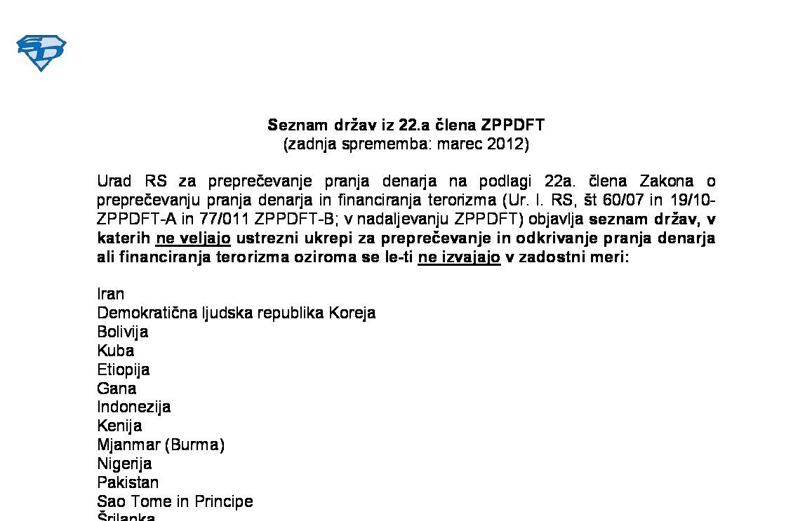 Seznam držav, v zvezi s katerimi obstaja visoko in povečano tveganje za pojav pranja denarja ali financiranja terorizma (zadnja sprememba: 28.10.2025) 29.10.2025