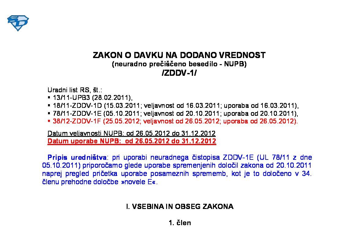 | ZAKON O DAVKU NA DODANO VREDNOST (ZDDV-1 - neuradno prečiščeno besedilo) | 01.01.2026 | [!] | 31.12.2025 | |