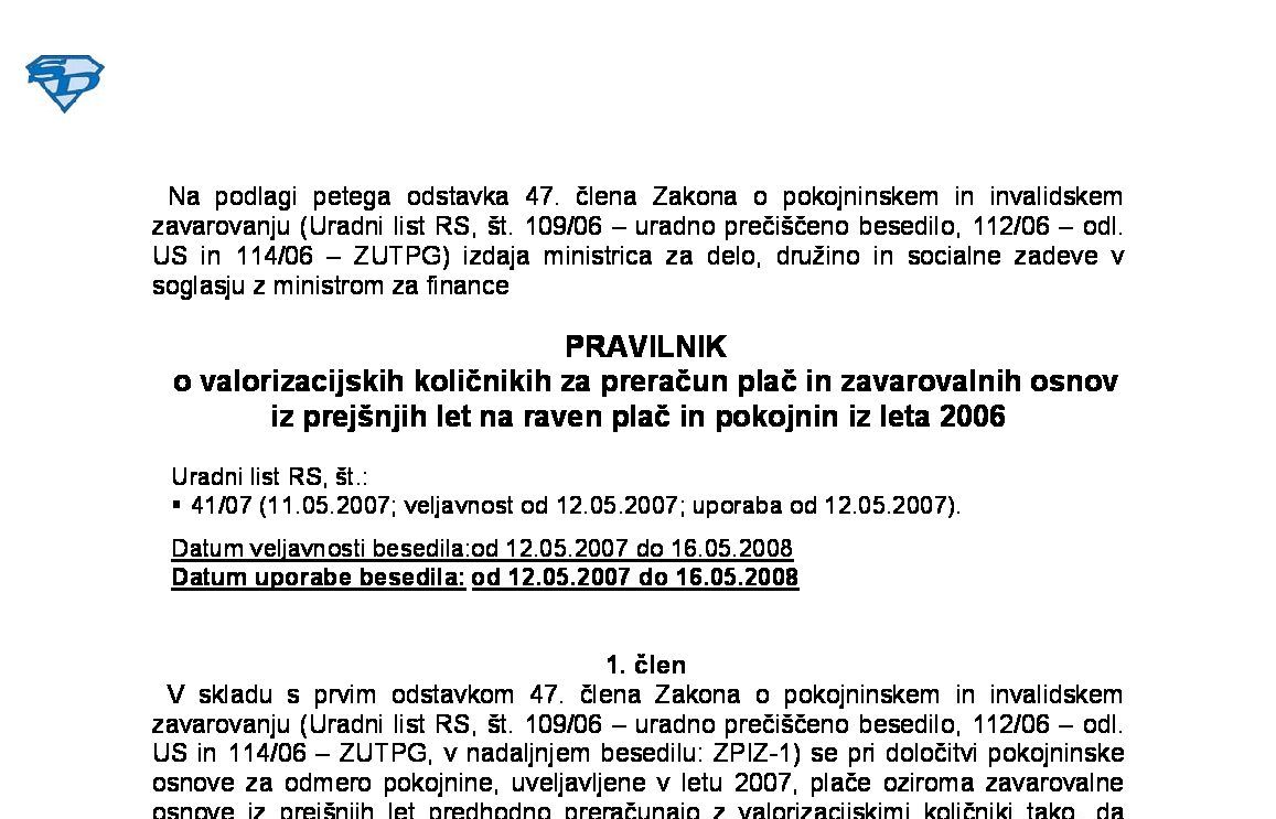 Sklep o določitvi prispevkov za posebne primere zavarovanja (NUPB - neuradno prečiščeno besedilo) 01.04.2025 12.03.2025