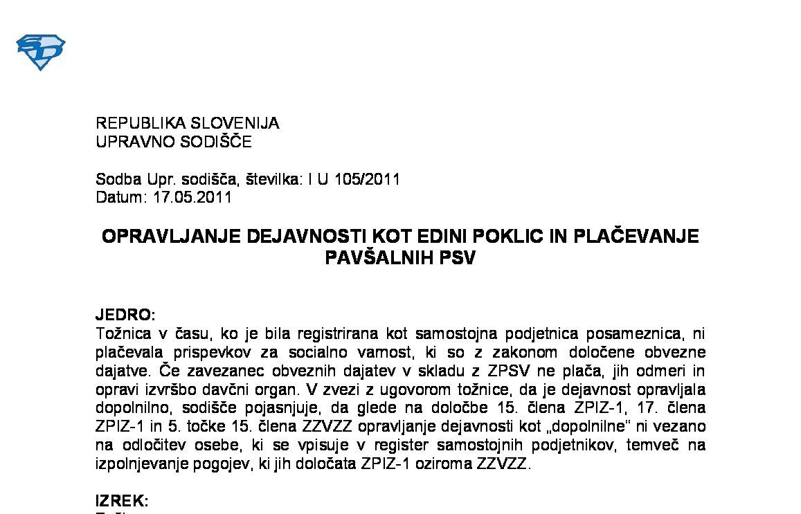 POSLOVODNA OSEBA IN DRUŽBENIK ZAVODA – Zavarovalna podlaga 040 – Prispevki za PIZ in prispevki za druga socialna zavarovanja (I U 880/2021-15) 19.06.2024 11.03.2025