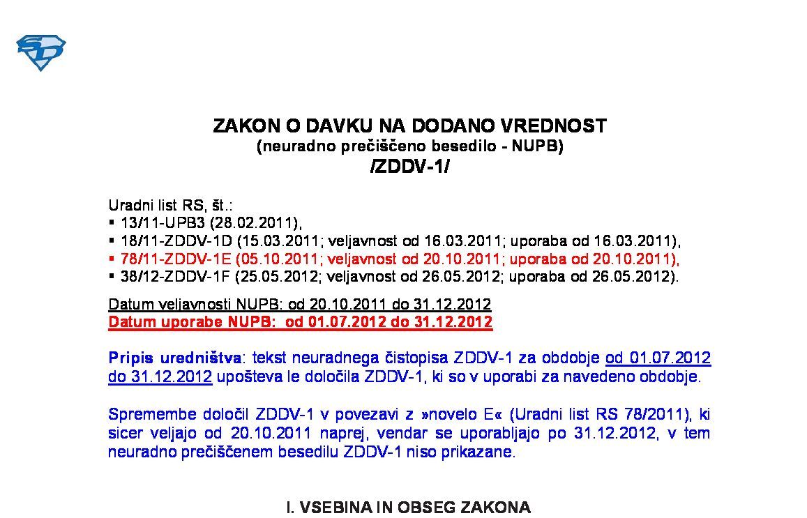 | ZAKON O DAVKU NA DODANO VREDNOST (ZDDV-1 - neuradno prečiščeno besedilo) | 06.12.2023 | [!] | 31.12.2023 | 05.12.2023 |