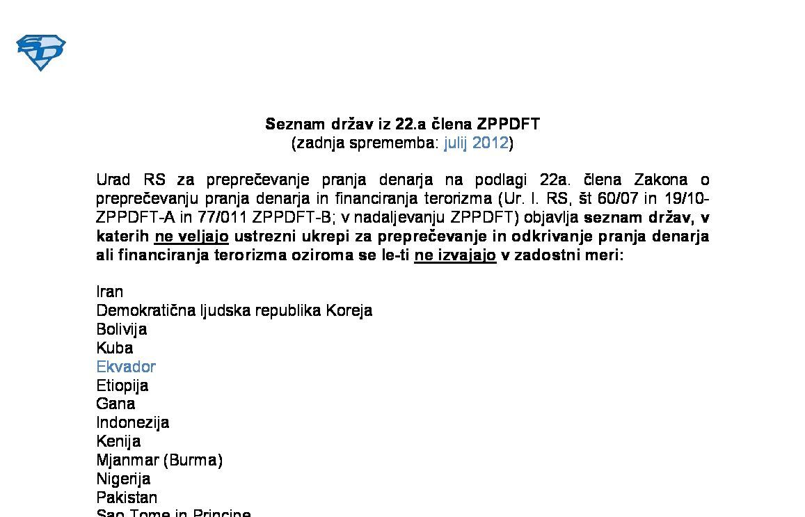 Seznam držav, v zvezi s katerimi obstaja visoko in povečano tveganje za pojav pranja denarja ali financiranja terorizma (zadnja sprememba: 28.10.2025) 29.10.2025