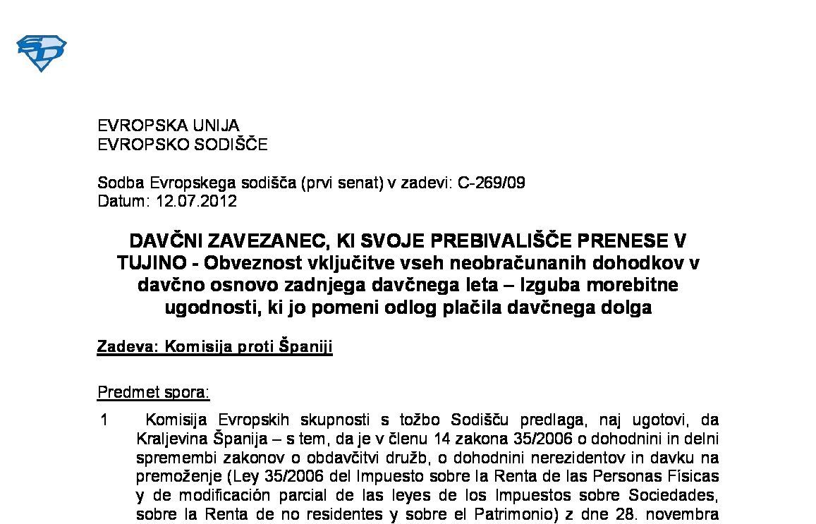 DELAVEC IZ DRŽAVE ČLANICE, KI JE PRENESEL SVOJE STALNO PREBIVALIŠČE V ŠVICO – Davčne ugodnosti – Omejitev na omejeno obdavčljive delavce, ki so rezidenti države članice ali države pogodbenice Sporazuma o EGP – Enako obravnavanje (C-627/22) 30.05.2024 31.05.2024