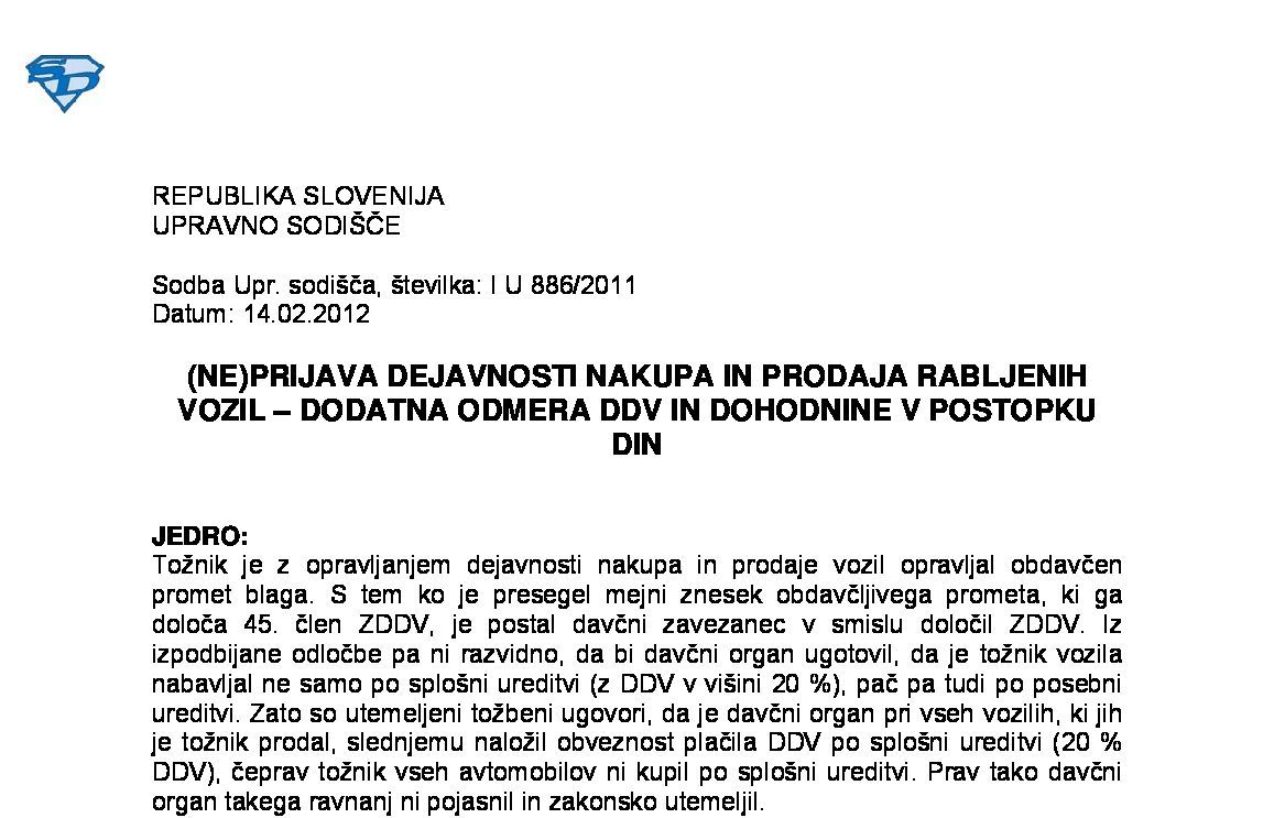 IZPOLNJEVANJE POGOJEV ZA DOBAVO BLAGA ZNOTRAJ UNIJE, OPROŠČENO PLAČILA DDV NA PODLAGI 46. ČLENA ZDDV-1 – Nepopolne CMR listine (I U 1704/2021-38) 27.11.2024 15.10.2025