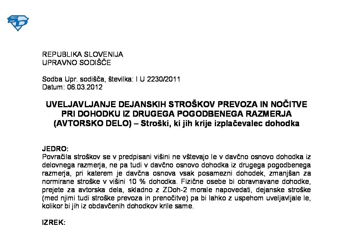DOHODEK IZ DELOVNEGA RAZMERJA – Čezmejni delovni migrant – Stroški prehrane med delom (II U 195/2022-15) 30.09.2025 05.12.2025