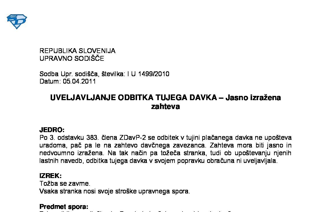VERODOSTOJNA KNJIGOVODSKA LISTINA – Potni nalog – Dokazovanje nastanka poslovnega dogodka (I U 1898/2021-11) 21.05.2024 14.04.2025