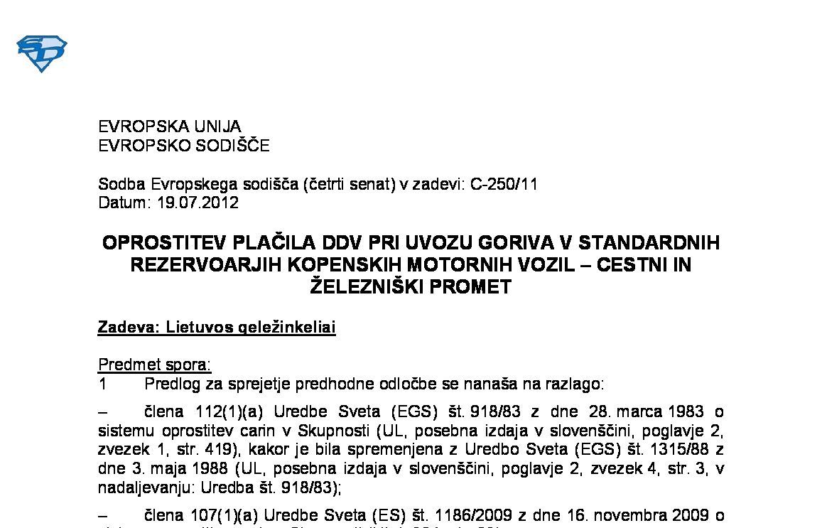 VRAČILO DDV DAVČNIM ZAVEZANCEM, KI NIMAJO SEDEŽA V DRŽAVI ČLANICI VRAČILA – GLAVNA IN POMOŽNA STORITEV – UMETNA DELITEV ENOTNE STORITVE – Neobstoj premestitve predmeta dobave (C-234/24) 23.10.2025 24.10.2025