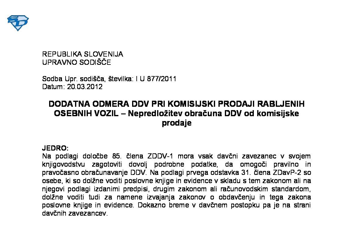 PRIDOBITEV VOZILA – PREDPLAČILO ZA PRIHODNJO PRODAJO VOZILA – Pridobitev novega ali rabljenega vozila (I U 1443/2022-29) 23.10.2024 19.03.2025