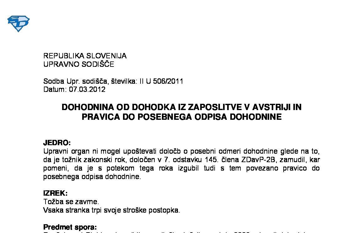 DOHODEK IZ DELOVNEGA RAZMERJA – Čezmejni delovni migrant – Stroški prehrane med delom (II U 195/2022-15) 30.09.2025 05.12.2025