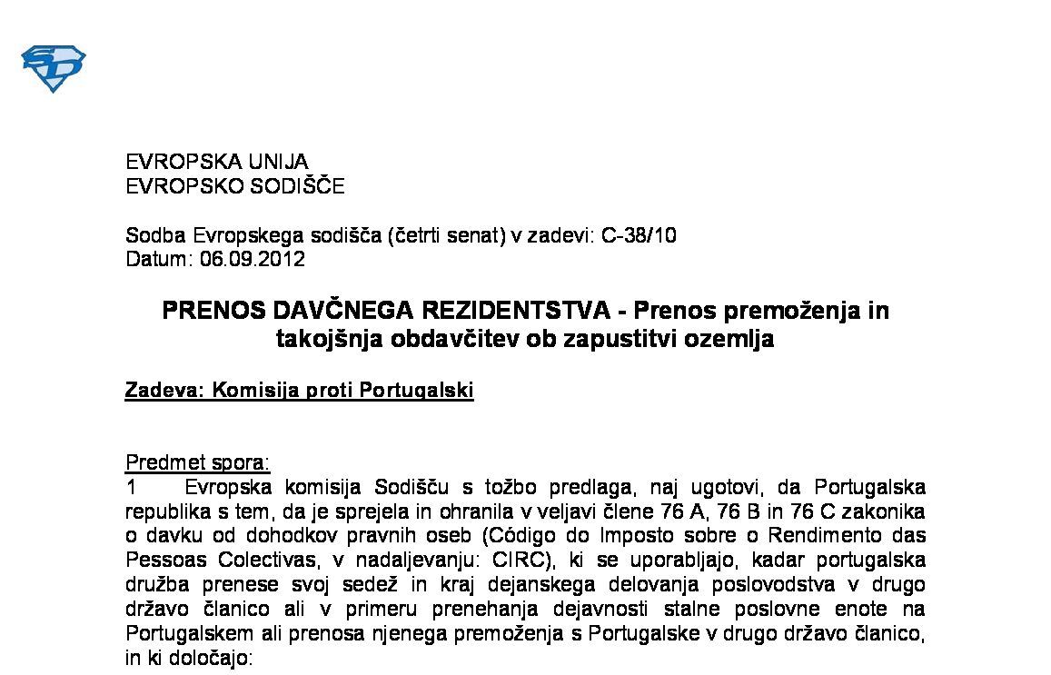 SKUPNI SISTEM OBDAVČITVE ZA ZDRUŽITVE, DELITVE, DELNE DELITVE, PRENOSE SREDSTEV IZ ZAMENJAVE KAPITALSKIH DELEŽEV – Delna delitev – Neobstoje zmanjšanja kapitala (C-318/22) 16.11.2023 18.04.2025