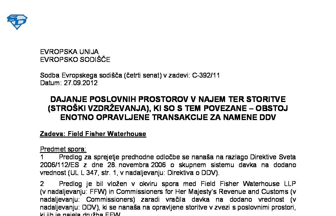 BREZPLAČNA PRAVNA POMOČ, KI JO ODVETNIK ZAGOTOVI STRANKI V SODNEM POSTOPKU – PLAČILO NAGRADE TEGA ODVETNIKA S STRANI PORAŽENE NASPROTNE STRANKE – Transakcije, ki so predmet DDV – Opravljanje storitev za plačilo (C-744/23) 23.10.2025 29.10.2025