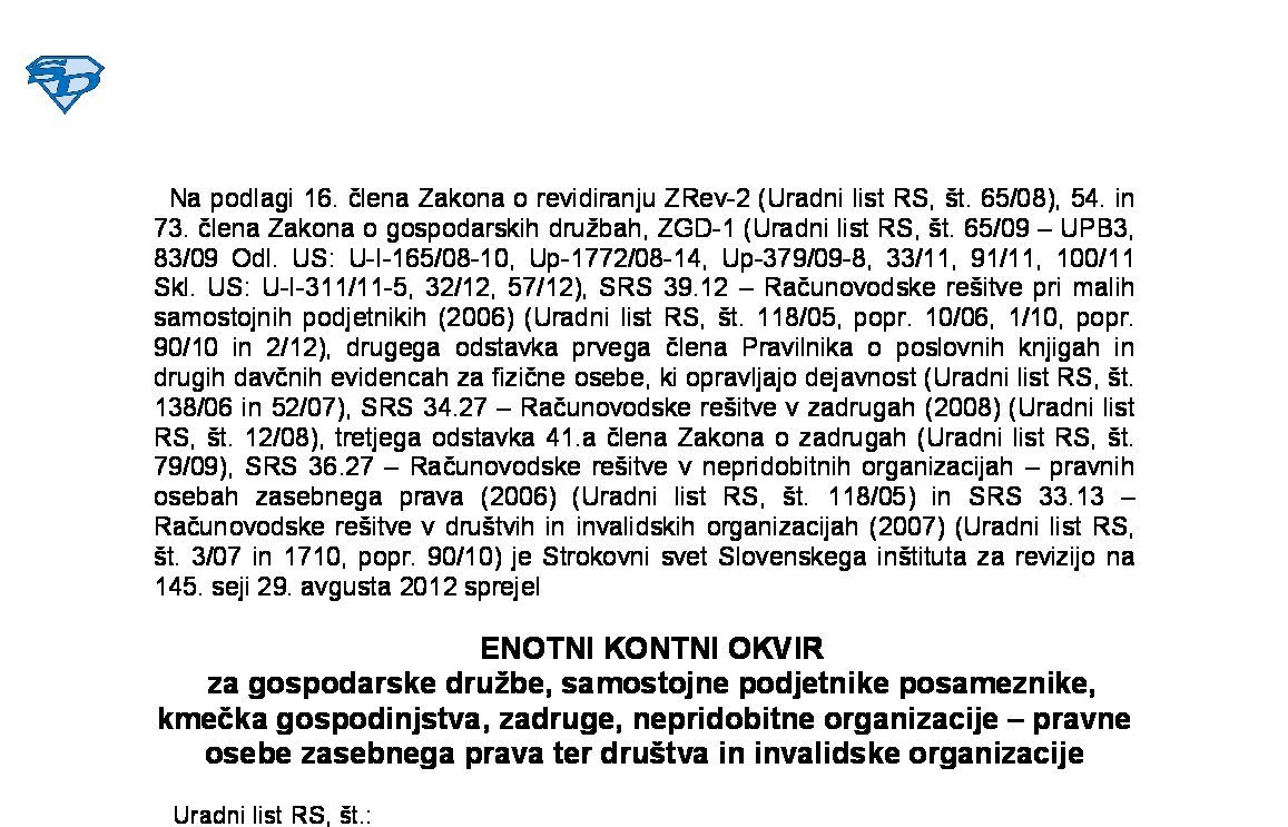 Enotni kontni ovir za gospodarske družbe, samostojne podjetnike posameznike, zadruge, nepridobitne organizacije – pravne osebe zasebnega prava ter društva in invalidske organizacije - SRS (2016) (neuradno prečiščeno besedilo) 01.01.2016 [!] 31.12.2023 11.01.2016