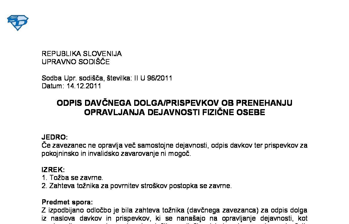 DIN IN IZDAJA POTRJENEGA RAČUNA – Ugotovitvena odločba – Pomanjkljiv izrek odločbe (I U 11/2023-13) 06.01.2025 11.07.2025