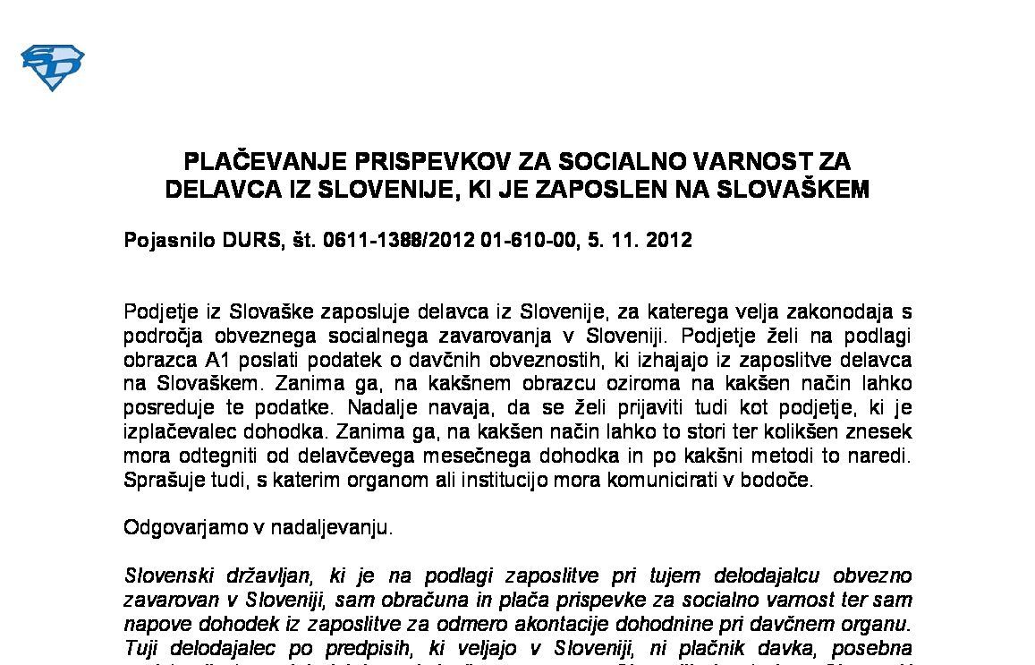 PLAČEVANJE PRISPEVKOV ZA SOCIALNO VARNOST ZA ZAVAROVANCE – OSEBE, KI OPRAVLJAJO DEJAVNOST KOT POSTRANSKI POKLIC (podrobnejši opis, 11. izdaja) 07.01.2026 15.01.2026