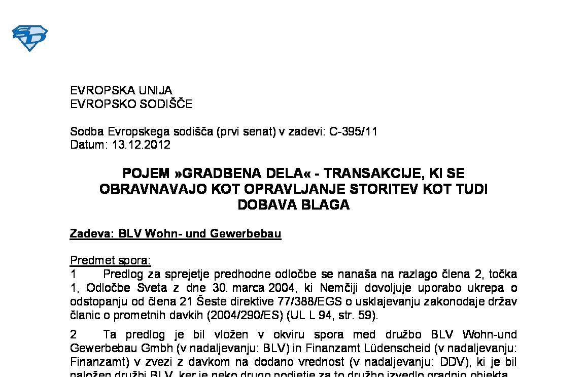 OPROSTITEV V ZVEZI Z DAJANJEM KREDITOV – OPROSTITEV V ZVEZI S FINANČNIMI TRANSAKCIJAMI – IZTERJAVA DOLGOV – Faktoring s prodajo terjatev – Faktoring z zastavno pravico (C-332/24) 23.10.2025 28.10.2025