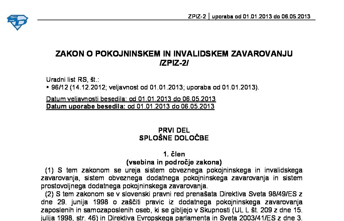 | ZAKON O POKOJNINSKEM IN INVALIDSKEM ZAVAROVANJU (ZPIZ-2 - neuradno prečiščeno besedilo) | 01.01.2026 | [!] | 20.11.2025 | |
