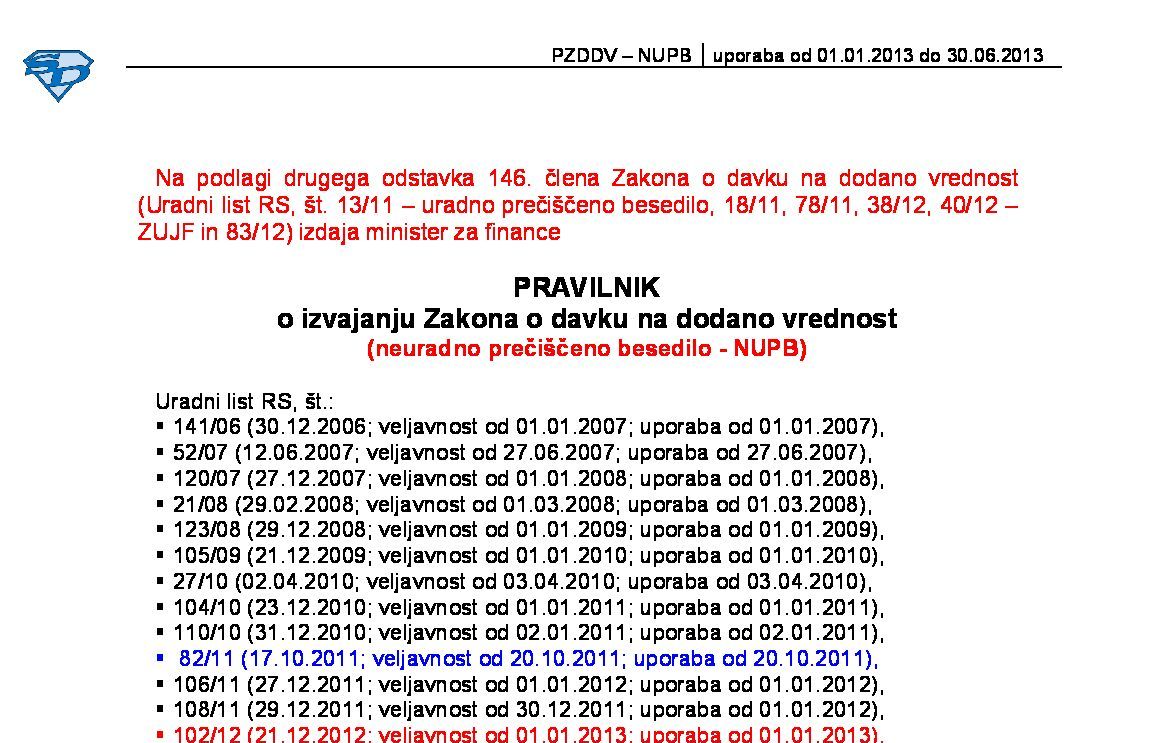 Pravilnik o izvajanju Zakona o davku na dodano vrednost (PZDDV - neuradno prečiščeno besedilo) 01.01.2025 [!] 30.12.2024