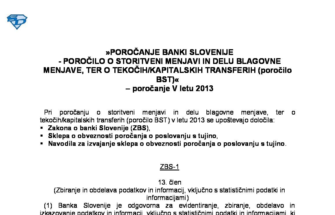 POROČANJE BANKI SLOVENIJE - POROČILO O POSLIH Z VREDNOSTNIMI PAPIRJI (poročila SRN, SNR, SNN, TNR, TRN, TRR) - poročanje v letu 2026 13.01.2026