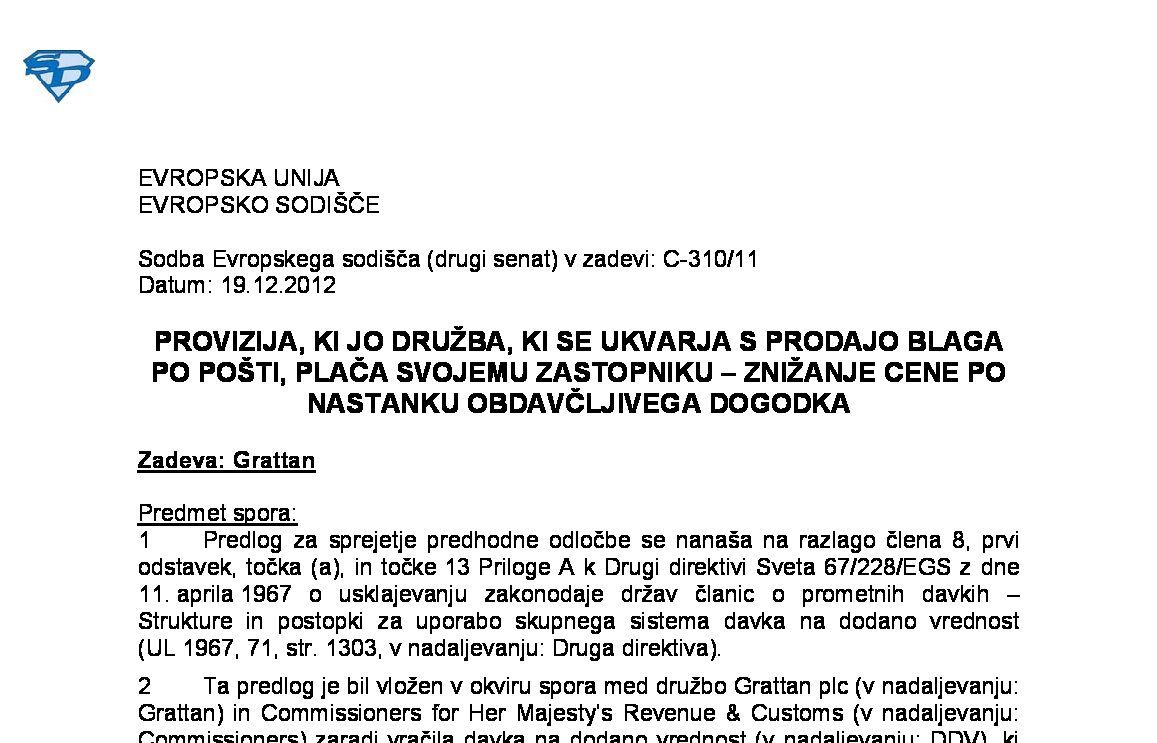 OPROSTITEV V ZVEZI Z DAJANJEM KREDITOV – OPROSTITEV V ZVEZI S FINANČNIMI TRANSAKCIJAMI – IZTERJAVA DOLGOV – Faktoring s prodajo terjatev – Faktoring z zastavno pravico (C-332/24) 23.10.2025 28.10.2025