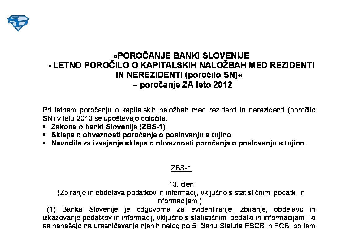 POROČANJE BANKI SLOVENIJE - LETNO POROČILO O KAPITALSKIH NALOŽBAH MED REZIDENTI IN NEREZIDENTI (poročilo SN) - poročanje za leto 2024 13.12.2024