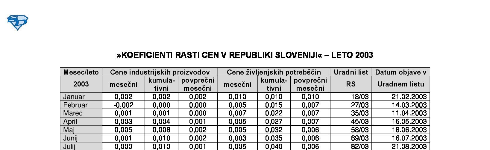 KOEFICIENTI RASTI CEN V REPUBLIKI SLOVENIJI – LETO 2024 24.12.2024