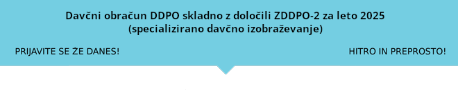 - potrebne priloge k obrazcu obračuna DDPO (podatki v zvezi z razkritjem skritih rezerv, podatki v zvezi z izvzetimi prihodki na podlagi mednarodnih pogodb, podatki v zvezi s pokrivanjem davčne izgube, podatki za investicijske olajšave, podatki za olajšavo v R&R, podatki za vlaganja v digitalni in zeleni prehod, olajšave za zaposlovanje, donacije, rezervacije …;