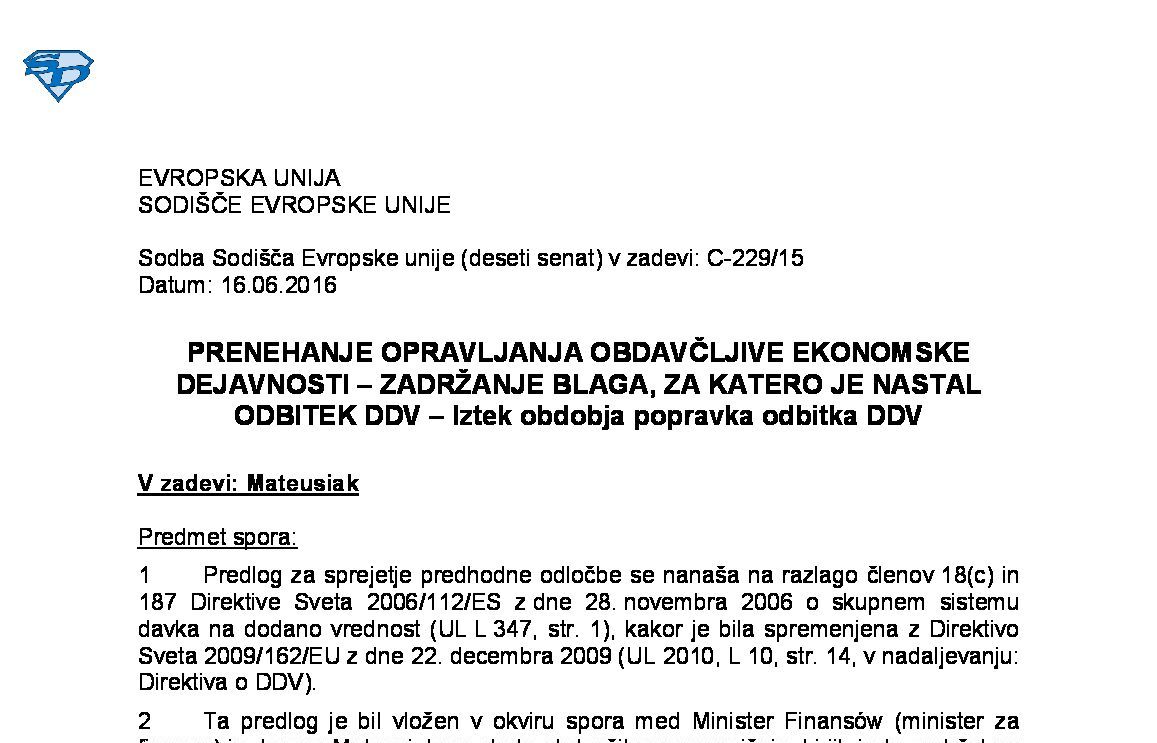 OPROSTITEV V ZVEZI Z DAJANJEM KREDITOV – OPROSTITEV V ZVEZI S FINANČNIMI TRANSAKCIJAMI – IZTERJAVA DOLGOV – Faktoring s prodajo terjatev – Faktoring z zastavno pravico (C-332/24) 23.10.2025 28.10.2025