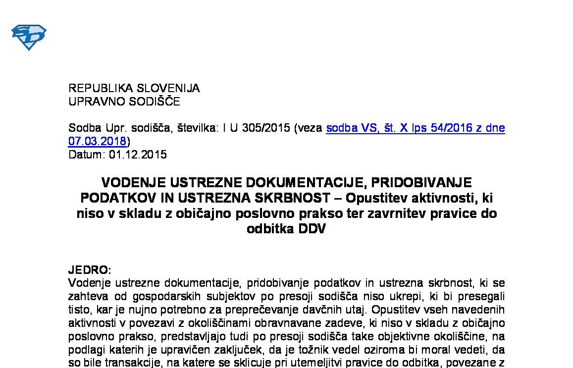 IZPOLNJEVANJE POGOJEV ZA DOBAVO BLAGA ZNOTRAJ UNIJE, OPROŠČENO PLAČILA DDV NA PODLAGI 46. ČLENA ZDDV-1 – Nepopolne CMR listine (I U 1704/2021-38) 27.11.2024 15.10.2025