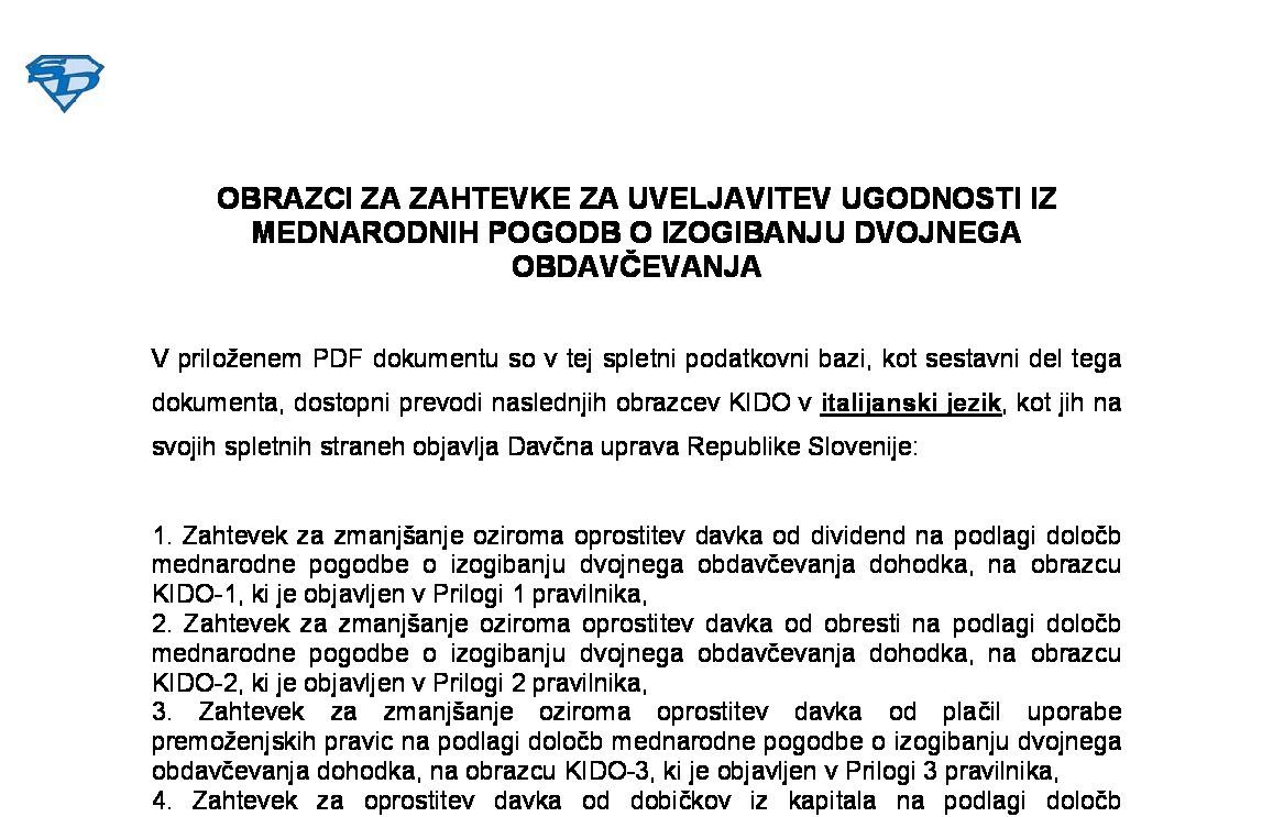 Pravilnik o obrazcu za obračun davčnih odtegljajev od plačil dohodkov rezidentov in nerezidentov in načinu predložitve obrazca davčnemu organu ("ODO-1 obrazec" - neuradno prečiščeno besedilo) 19.01.2013 21.01.2013