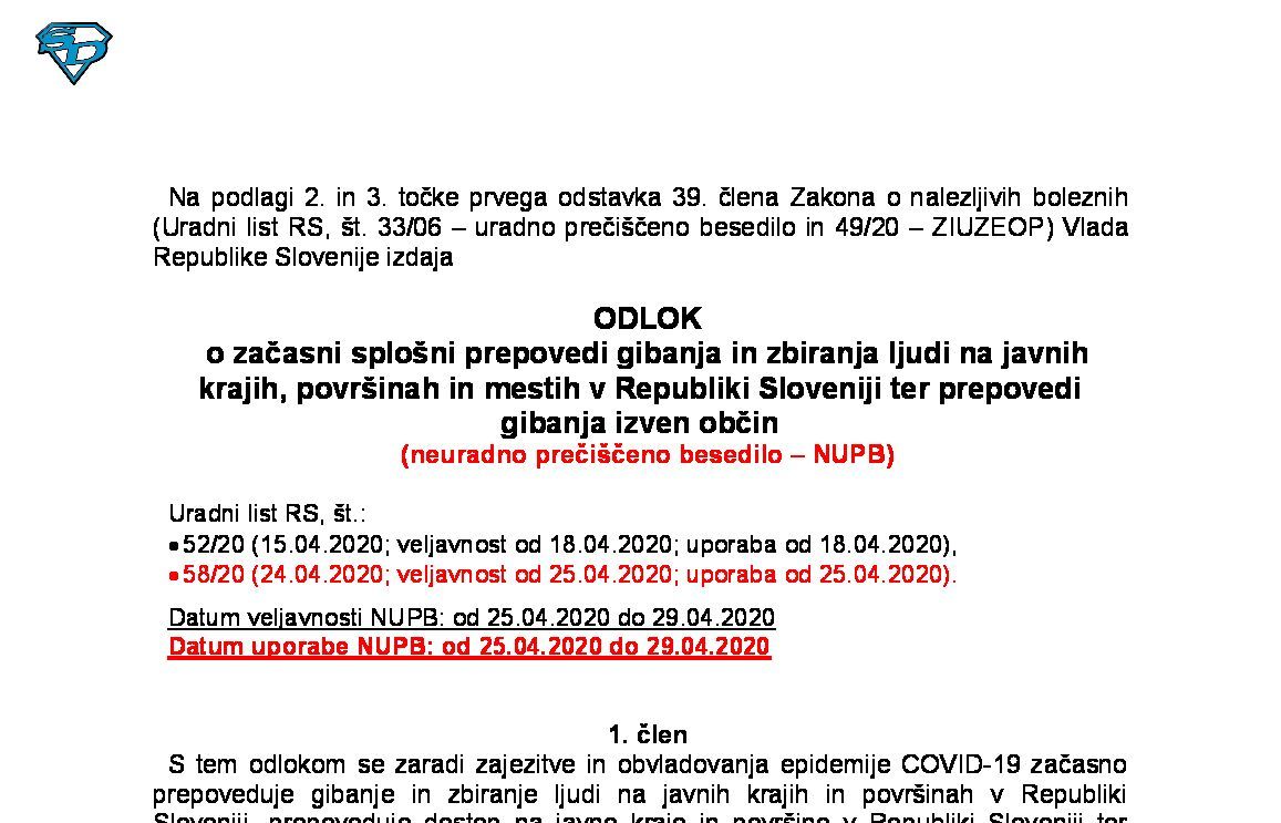 Sklep o uporabi ukrepov, ki jih določa Zakon o nalezljivih boleznih, pri nalezljivi bolezni COVID-19 04.09.2020 04.09.2020