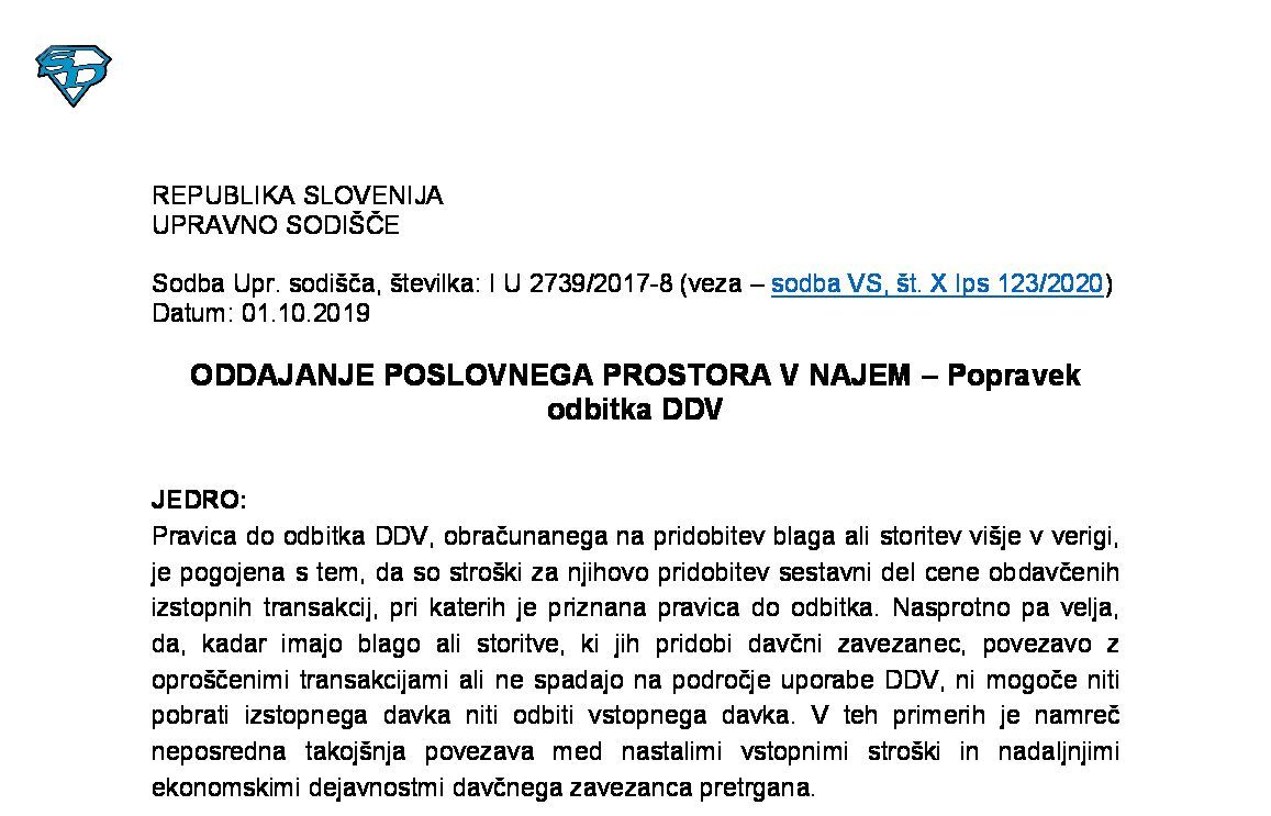 IZPOLNJEVANJE POGOJEV ZA DOBAVO BLAGA ZNOTRAJ UNIJE, OPROŠČENO PLAČILA DDV NA PODLAGI 46. ČLENA ZDDV-1 – Nepopolne CMR listine (I U 1704/2021-38) 27.11.2024 15.10.2025