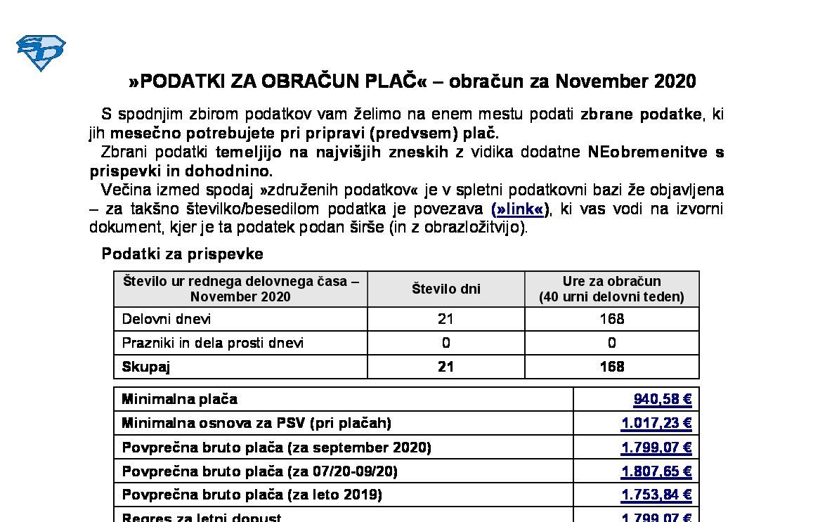 PODATKI ZA OBRAČUN PLAČ – obračun za NOVEMBER 2025 21.11.2025