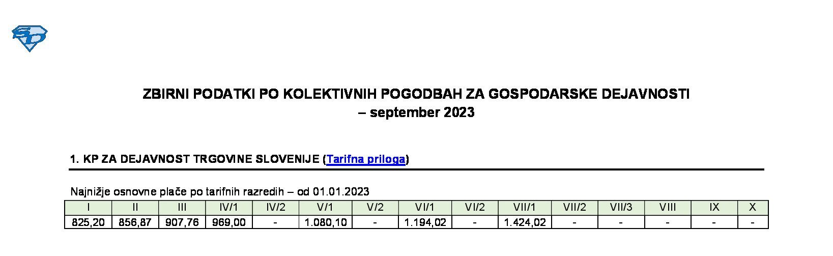 ZBIRNI PODATKI PO KOLEKTIVNIH POGODBAH ZA GOSPODARSKE DEJAVNOSTI - september 2025 02.10.2025