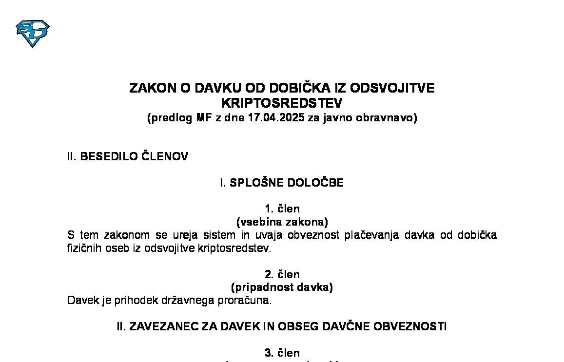 Članek nima posebnosti! Priloga - ZAKON O DAVKU OD DOBIČKA IZ ODSVOJITVE KRIPTOSREDSTEV (predlog MF z dne 17.04.2025 za javno obravnavo).pdf