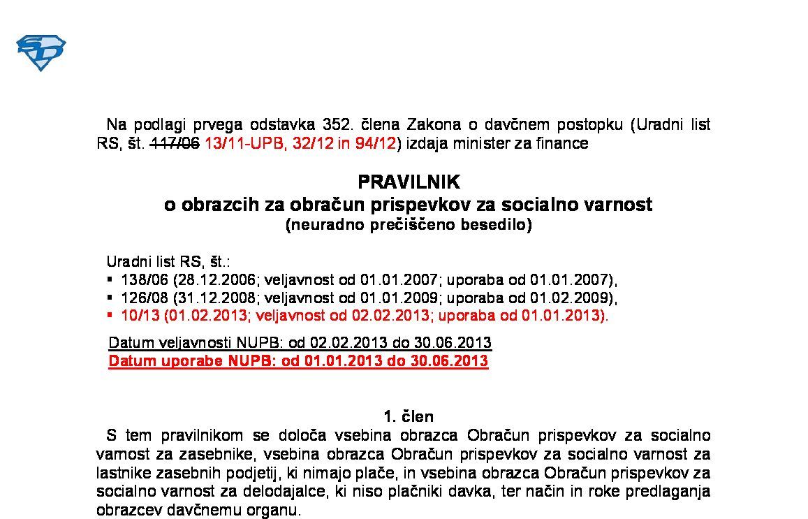 | Pravilnik o obrazcih za obračun prispevkov za socialno varnost (neuradno prečiščeno besedilo - NUPB) | 01.07.2025 | 27.05.2025 | ||