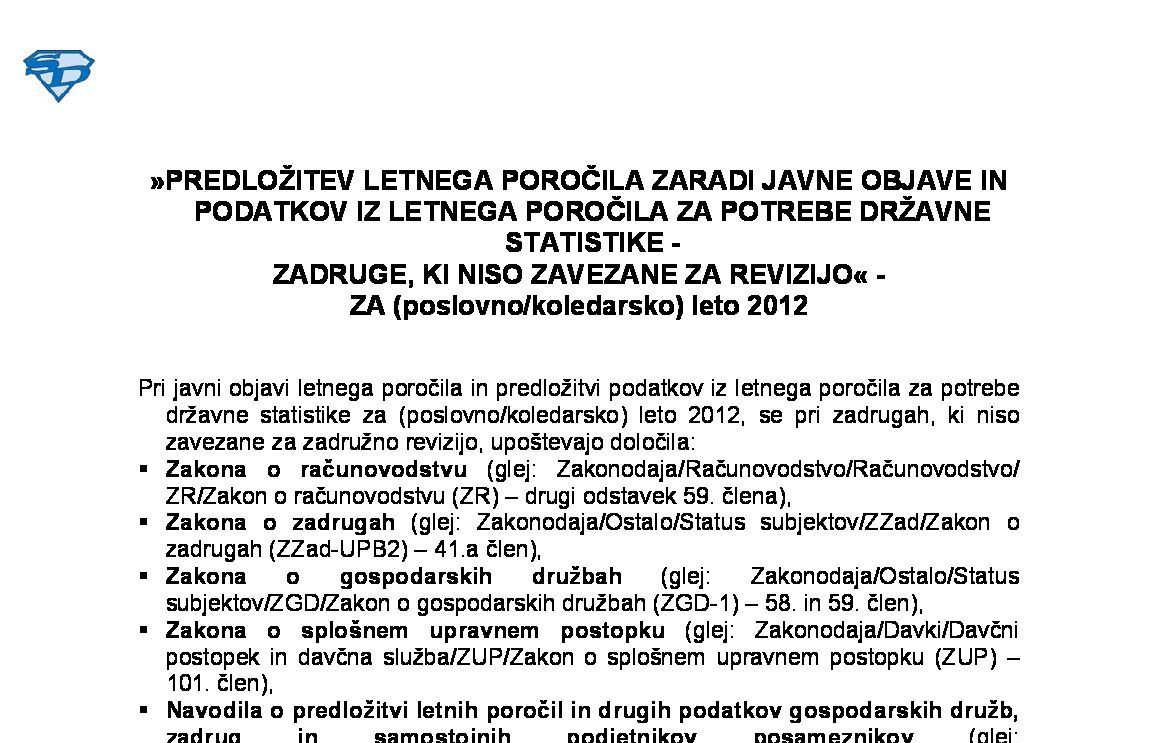 PREDLOŽITEV LETNEGA POROČILA IN PODATKOV IZ LETNEGA POROČILA ZA POTREBE DRŽAVNE STATISTIKE – ZADRUGE - ZA (poslovno/koledarsko) leto 2024 31.01.2025