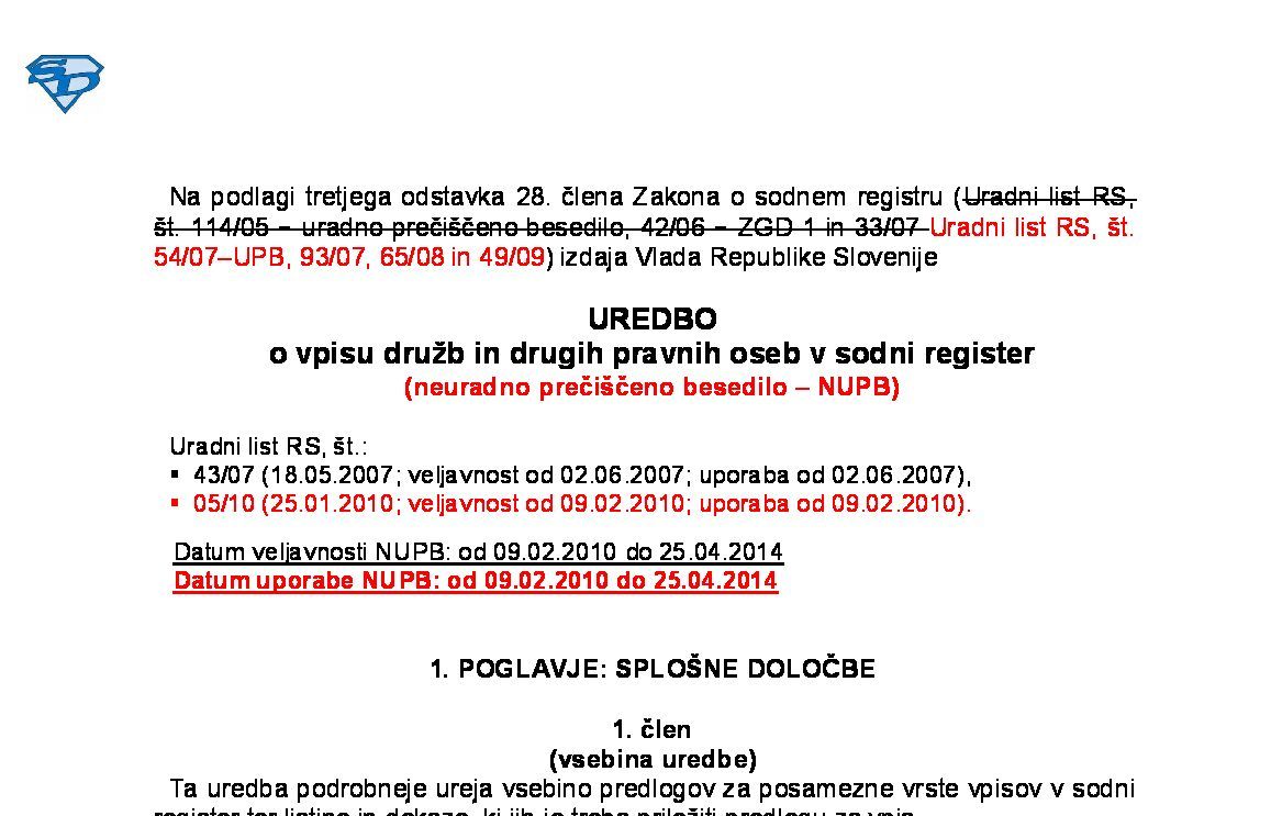 Uredba o sodnem registru (NUPB - neuradno prečiščeno besedilo) 10.08.2024 [!] 01.08.2024