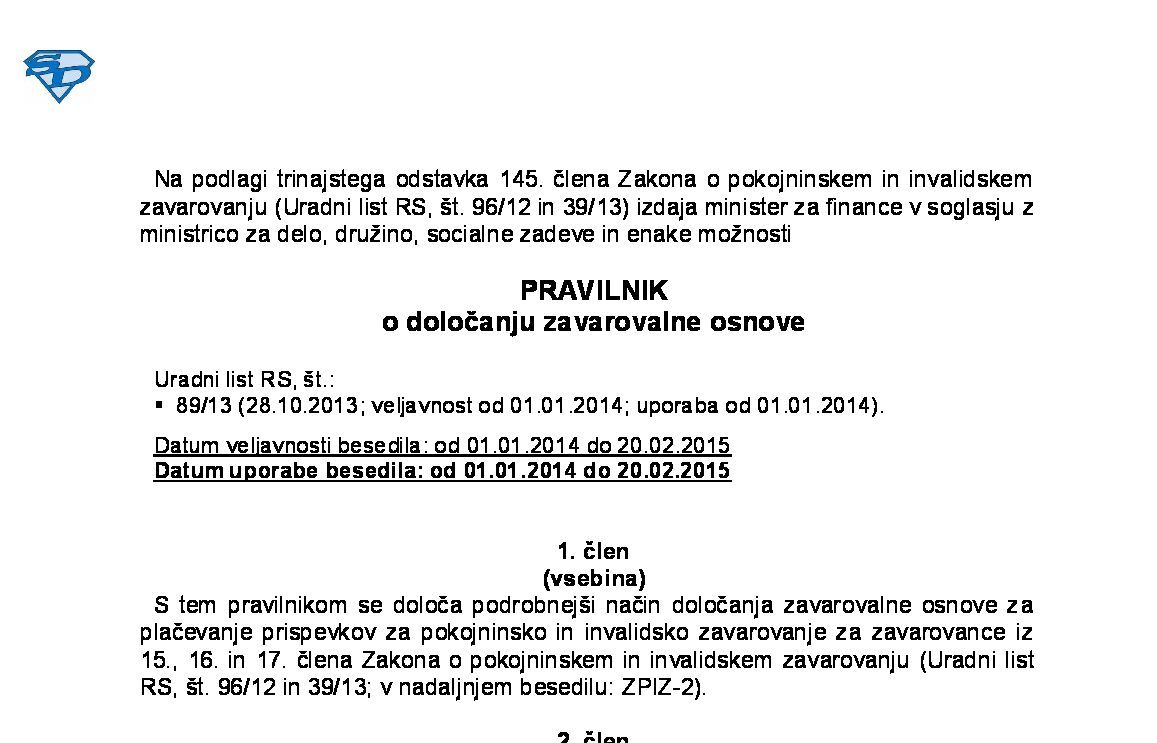| Sklep o določitvi prispevkov za posebne primere zavarovanja (NUPB - neuradno prečiščeno besedilo) | 01.04.2025 | 12.03.2025 | ||