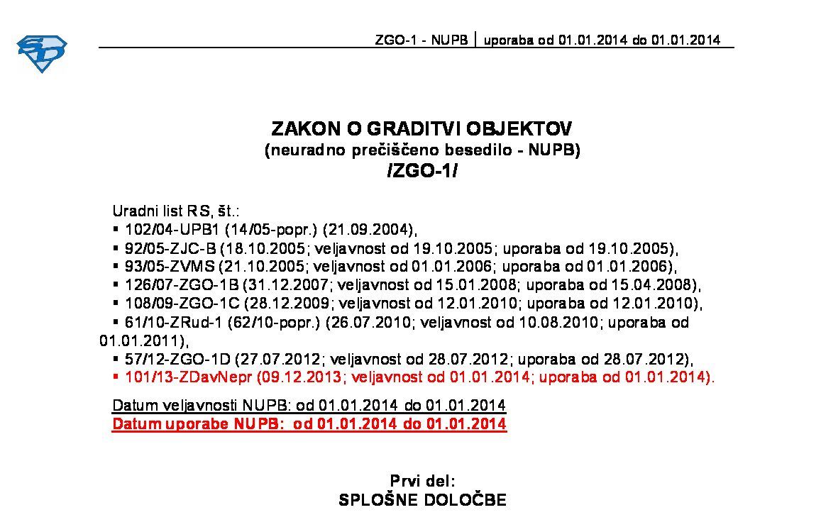 ZGO-1 z dopolnitvami po ZDavNepr (UL RS 101/13) se je začel uporabljati od 01.01.2014 in po ZGO-1E doživel dodatno dopolnitev, ki se kot NUPB uporablja od 28.12.2013 naprej. Članek nima prilog!