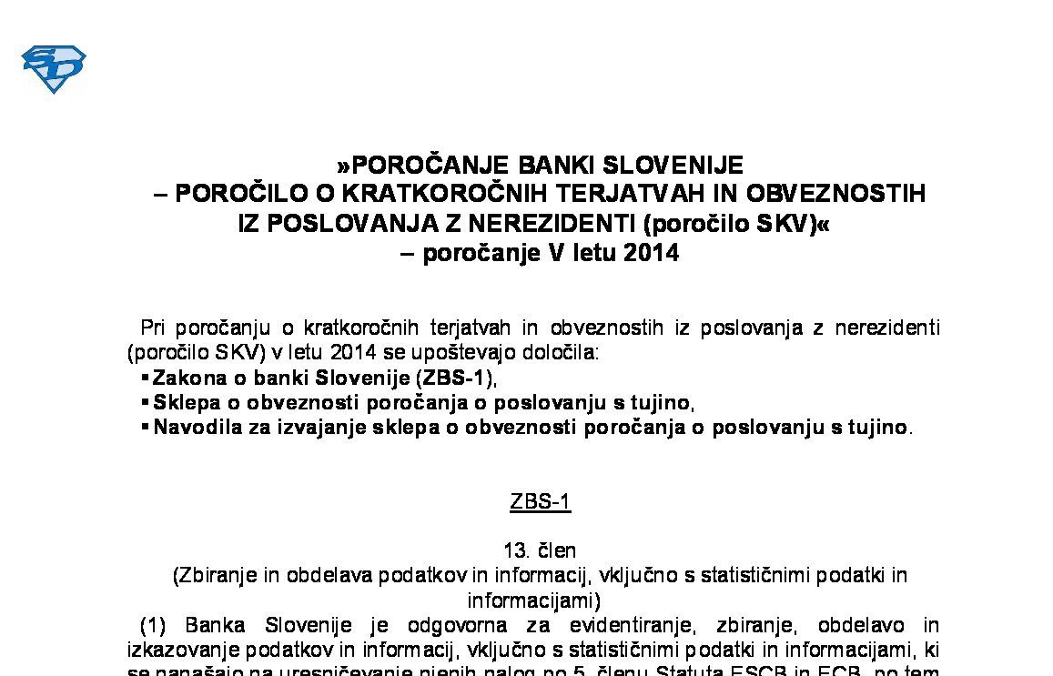 POROČANJE BANKI SLOVENIJE - POROČILO O POSLIH Z VREDNOSTNIMI PAPIRJI (poročila SRN, SNR, SNN, TNR, TRN, TRR) - poročanje v letu 2026 13.01.2026