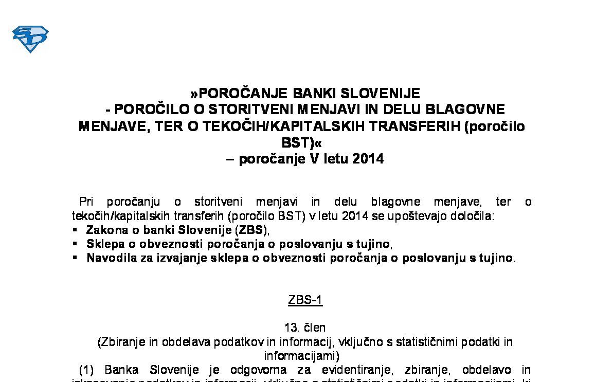 POROČANJE BANKI SLOVENIJE - MESEČNO POROČILO O KAPITALSKIH NALOŽBAH MED REZIDENTI IN NEREZIDENTI - TRANSAKCIJE (poročilo SN-T) - poročanje v letu 2025 13.12.2024