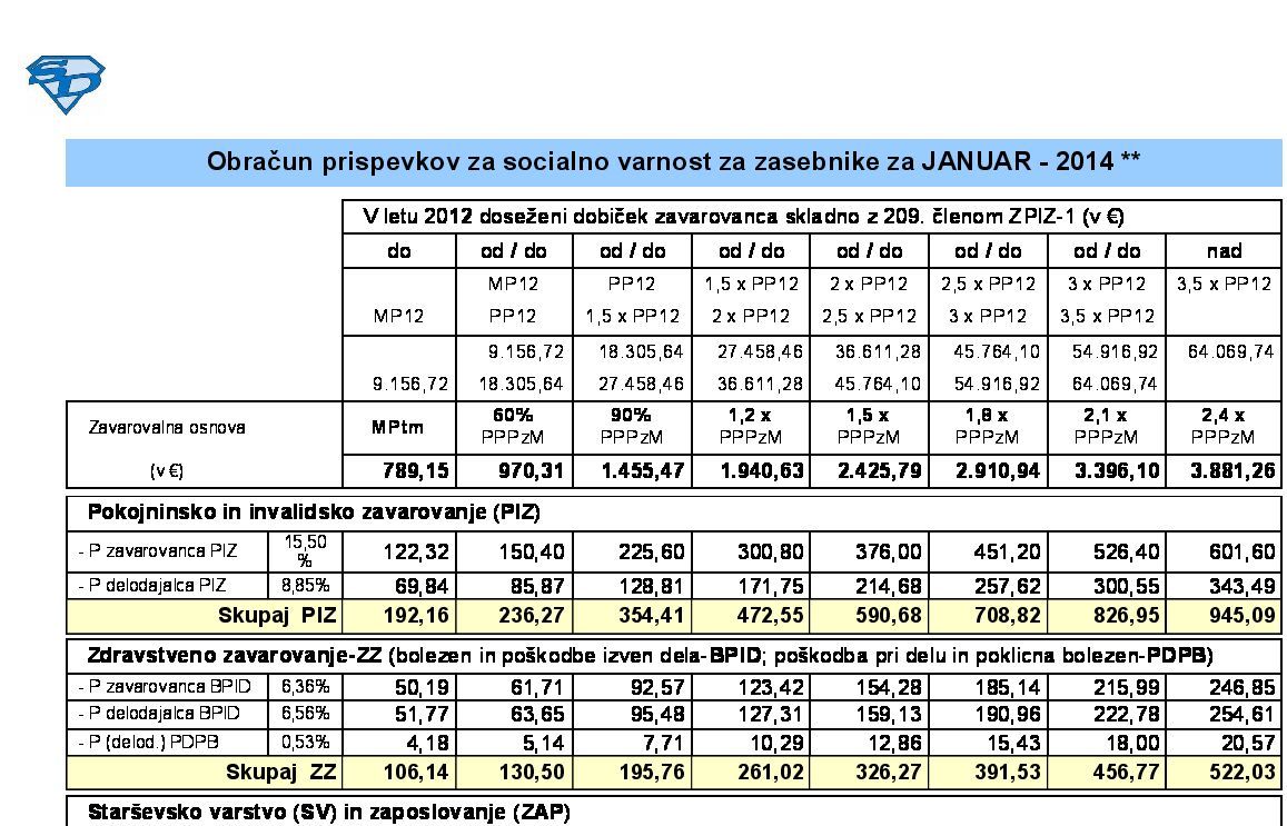 Prvotno objavo z dne 31.01.2014 (v prilogi) dopolnjujemo - skladno z določili materialnih predpisov razlika v delu zneska za najnižjo predpisano zavarovalno osnovo za zasebnike, ki so se tako zavarovali pred 01.01.2014 oz. od 01.01.2014 naprej.