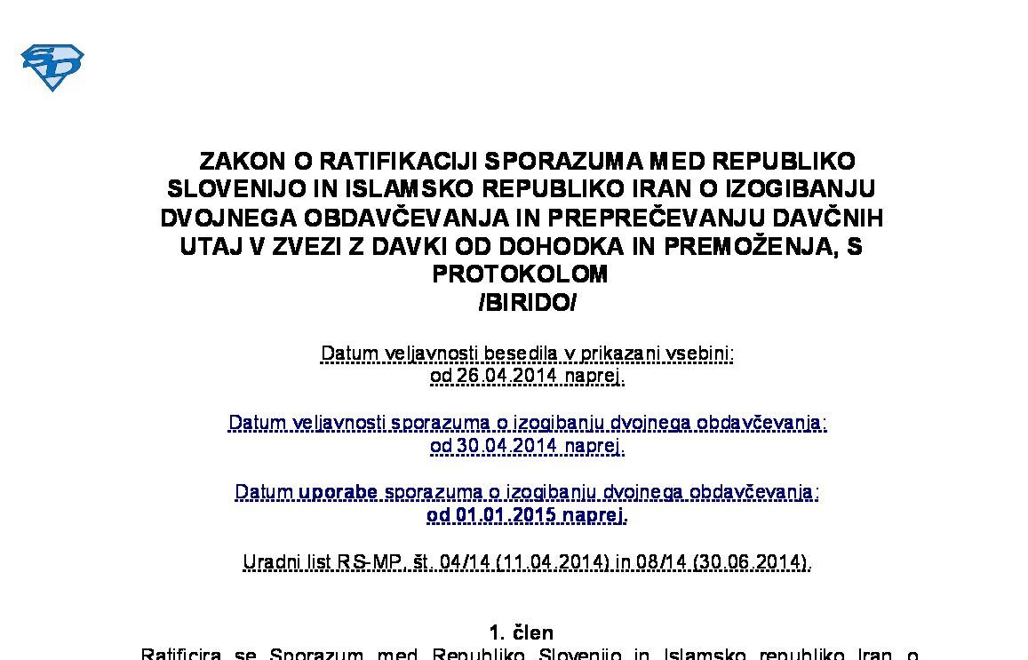 NOVA ZELANDIJA - Sporazum med Republiko Slovenijo in Novo Zelandijo o odpravi dvojnega obdavčevanja v zvezi z davki od dohodka ter o preprečevanju davčnih utaj in izogibanja davkom (BNZODO) 21.07.2025